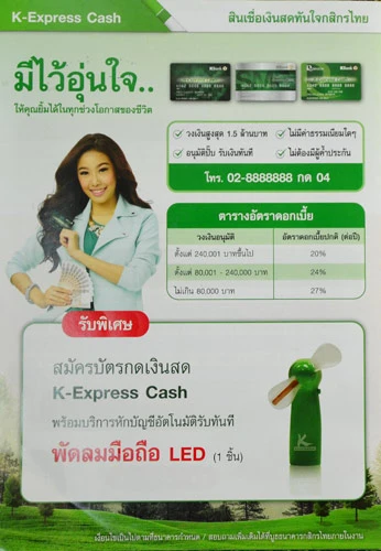 เมื่อสมัครบัตรกดเงินสด K-Express Cash พร้อมบริการหักบัญชีอัตโนมัติรับทันที พัดลมมือถือ LED 1 ชิ้น