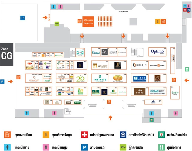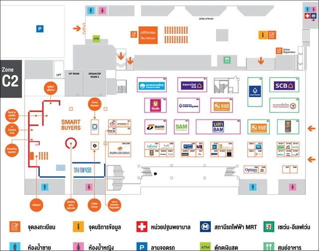 งานอภิมหกรรมบ้าน - คอนโดฯ และสินเชื่อแห่งปี มีบริการให้คำปรึกษา สำหรับลูกค้ามือใหม่ที่ต้องการซื้อบ้าน กู้ยังไงให้ผ่าน? วิเคราะห์กลยุทธ์ลงทุนอสังหาฯ เจาะ 10 ทำเลทอง ปี 2559 และแผนที่โครงข่ายระบบรถไฟฟ้ากรุงเทพฯ และปริมณฑล 10 สาย พร้อมรับของพรีเมียมเมื่อเยี่ยมชมบูธ และรับโปรโมชั่นพิเศษ เมื่อจองซื้อบ้าน - คอนโดฯ ภายในงาน ท่านที่สนใจโปรโมชั่นต่างๆ สามารถเข้าชมงานตามแผนผังบูธของแต่ละโครงการและสถาบันการเงินที่มาร่วมงานตามโซนด้านล่างนี้ได้เลยค่ะ