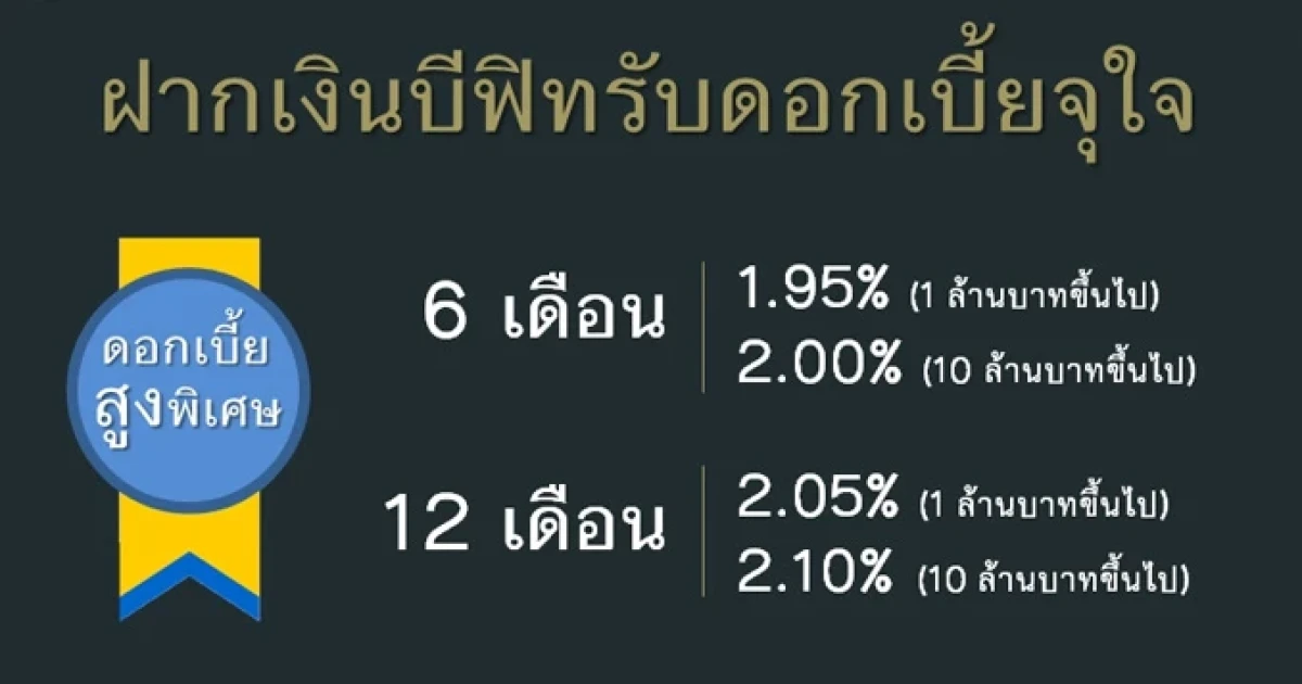 ฝากเงินบีฟิทรับดอกเบี้ยจุใจ ดอกเบี้ยสูงพิเศษ 2.10% ต่อปี