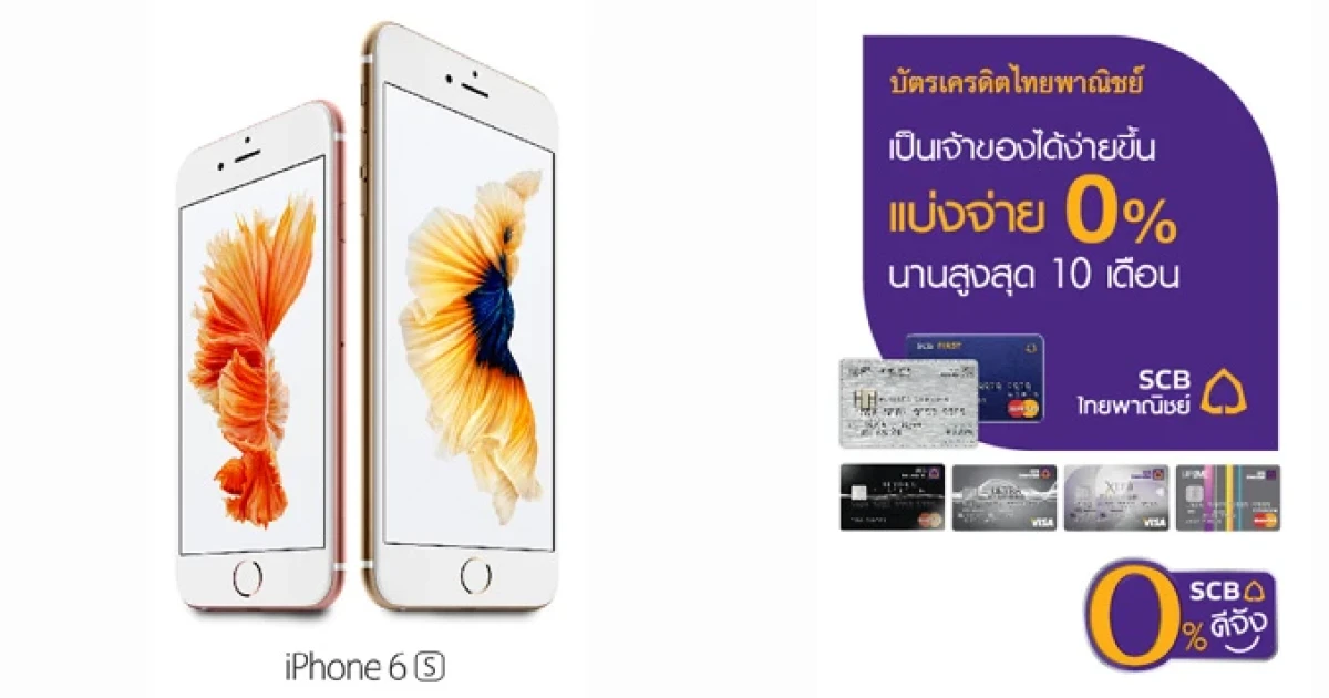 ซื้อ iPhone 6s แบ่งจ่าย 0% นานสูงสุด 10 เดือน พร้อมรับเงินคืน กับบัตรเครดิตไทยพาณิชย์