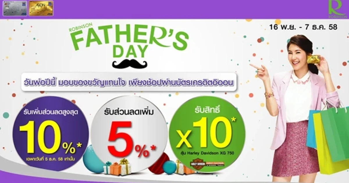 วันพ่อปีนี้ รับของขวัญแทนใจ 2 ต่อ พร้อมรับส่วนลดสูงสุดถึง 10% เพียงช้อปผ่านบัตรเครดิตอิออน ที่ห้างสรรพสินค้าโรบินสันทุกสาขา