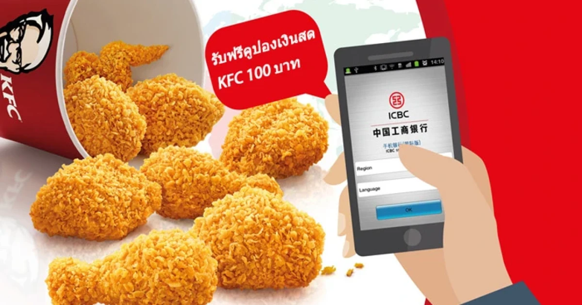 พิเศษสุดๆ สำหรับลูกค้า ICBC Personal Internet Banking และ Mobile Banking รับฟรี คูปองเงินสด KFC 100 บาท เมื่อทำรายการตามเงื่อนไขที่กำหนดดังต่อไปนี้