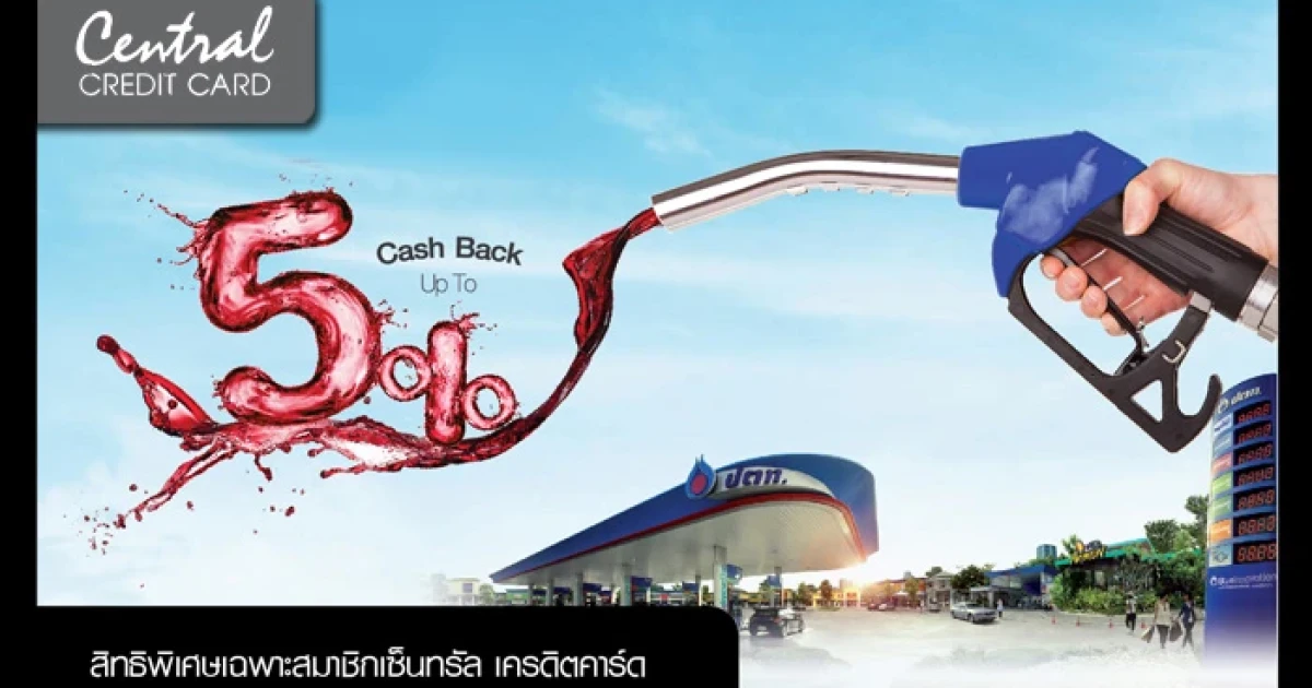 รับเครดิตเงินคืนสูงสุด 5% เมื่อเติมน้ำมันที่ปั๊ม ปตท. และชำระด้วยบัตรเซ็นทรัล เครดิตคาร์ด