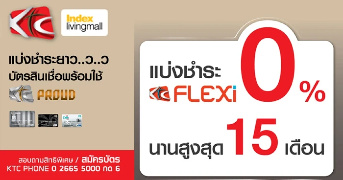 บัตรสินเชื่อพร้อมใช้ KTC ทุกประเภท ให้บริการแบ่งชำระ FLEXI 0% นานสูงสุด 15 เดือน เฉพาะสินค้าที่ร่วมรายการที่ Index Living Mall