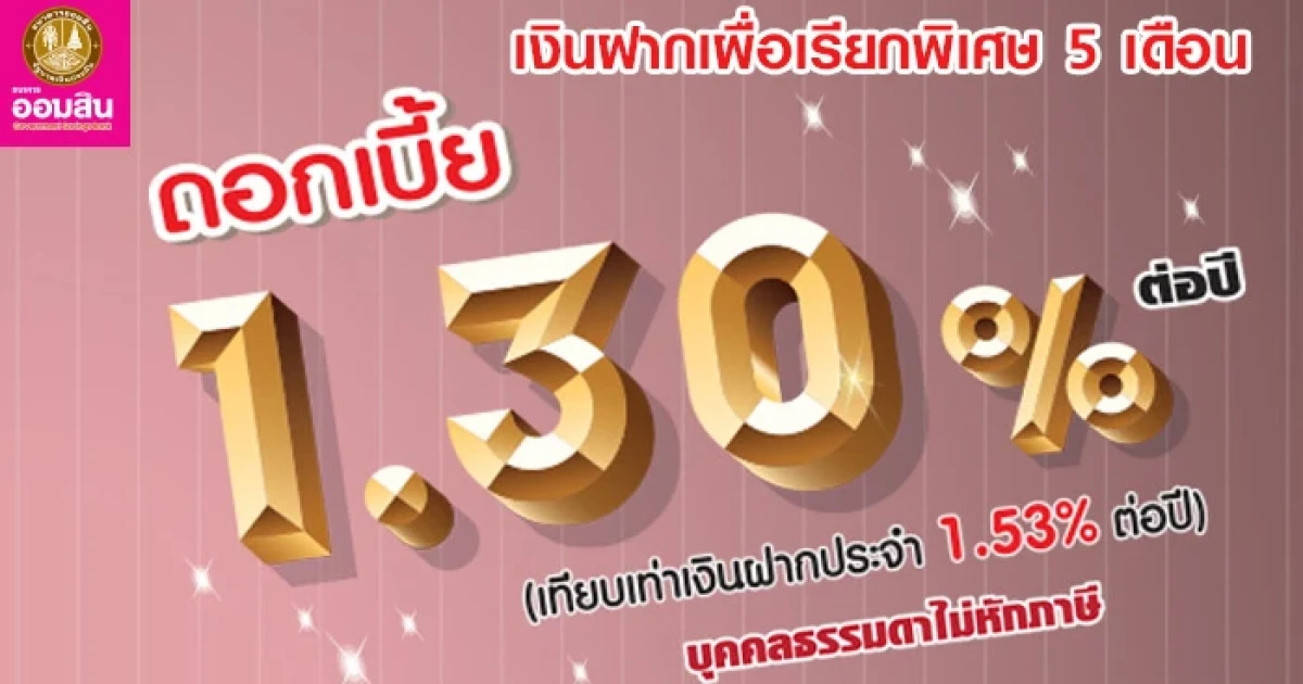 บัญชีเงินฝากเผื่อเรียกพิเศษ 5 เดือน รับดอกเบี้ยสูง 1.30% ต่อปี จาก ธ.ออมสิน