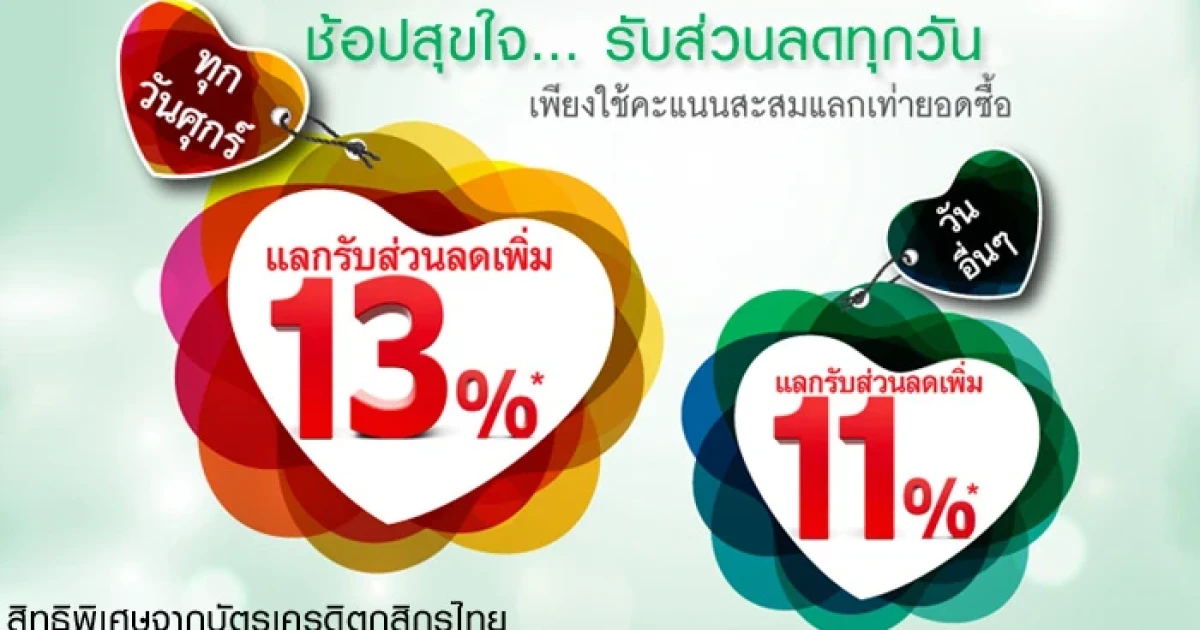 - รับส่วนลดเพิ่ม 13% เมื่อช้อปทุกวันศุกร์ และ