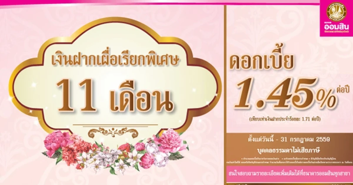 บัญชีเงินฝากเผื่อเรียกพิเศษ 11 เดือน ให้ดอกเบี้ยสูง 1.45% ต่อปี จาก ธ.ออมสิน
