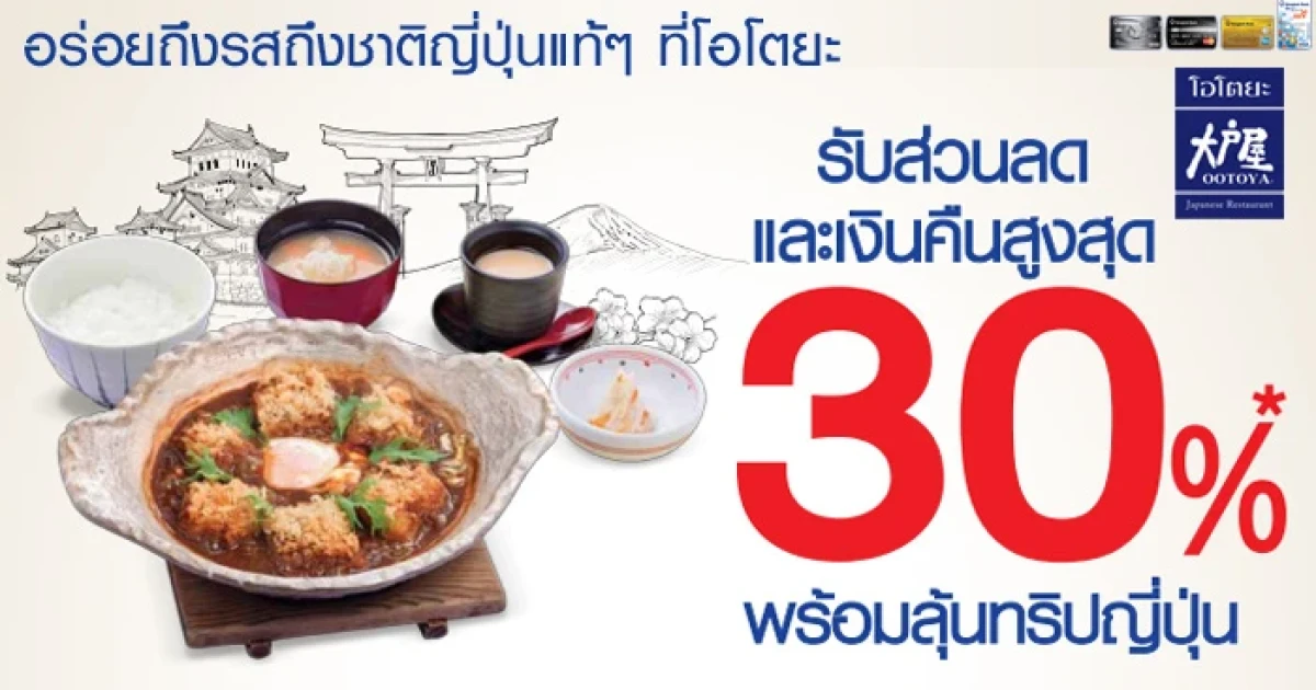 รับส่วนลดสูงสุด 30% พร้อมลุ้นทริปญี่ปุ่น ที่ร้านโอโตยะ เมื่อจ่ายผ่านบัตรเครดิตและบัตรเดบิต บีเฟิสต์