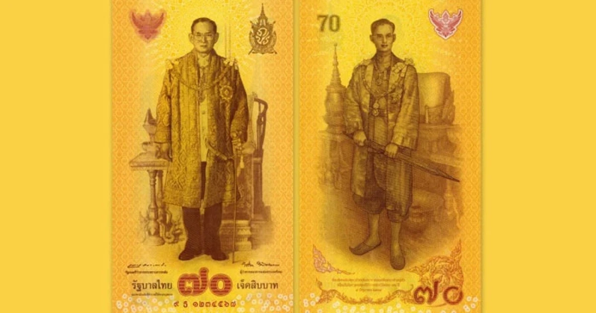 นายวิรไท สันติประภพ ผู้ว่าการธนาคารแห่งประเทศไทย (ธปท.) เปิดเผยว่า เนื่องในโอกาสที่พระบาทสมเด็จพระเจ้าอยู่หัว เสด็จเถลิงถวัลยราชสมบัติครบ 70 ปี ธปท. จึงได้จัดพิมพ์ธนบัตรที่ระลึกชนิดราคา 70 บาท จำนวน 20 ล้านฉบับ เพื่อร่วมเฉลิมพระเกียรติในโอกาสดังกล่าว โดย ธปท. จะนำธนบัตรที่ระลึกฯ เริ่มออกใช้ในวันที่ 9 มิถุนายน 2559 นี้ ด้วยการจ่ายแลกธนบัตรพร้อมแผ่นบรรจุในราคา 100 บาท