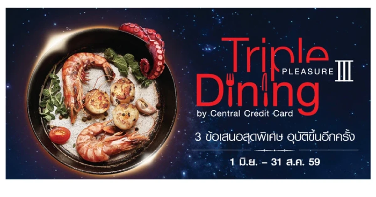 3 ข้อเสนอสุดพิเศษ.. รับเงินคืนสูงสุด 50% ณ ร้านอาหารที่ร่วมรายการ จากบัตรเซ็นทรัล เครดิตคาร์ด