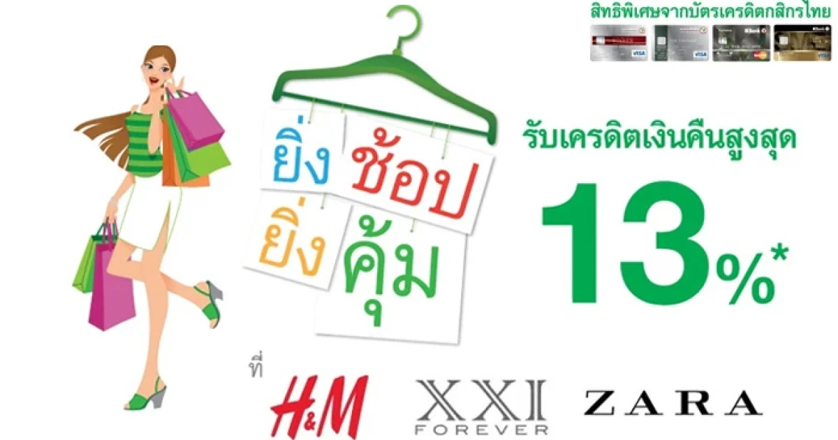 ยิ่งช้อป ยิ่งคุ้ม!! รับเครดิตเงินคืนสูงสุด 13% ที่ H&M, XXI FOREVER และ ZARA จากบัตรฯ กสิกรไทย