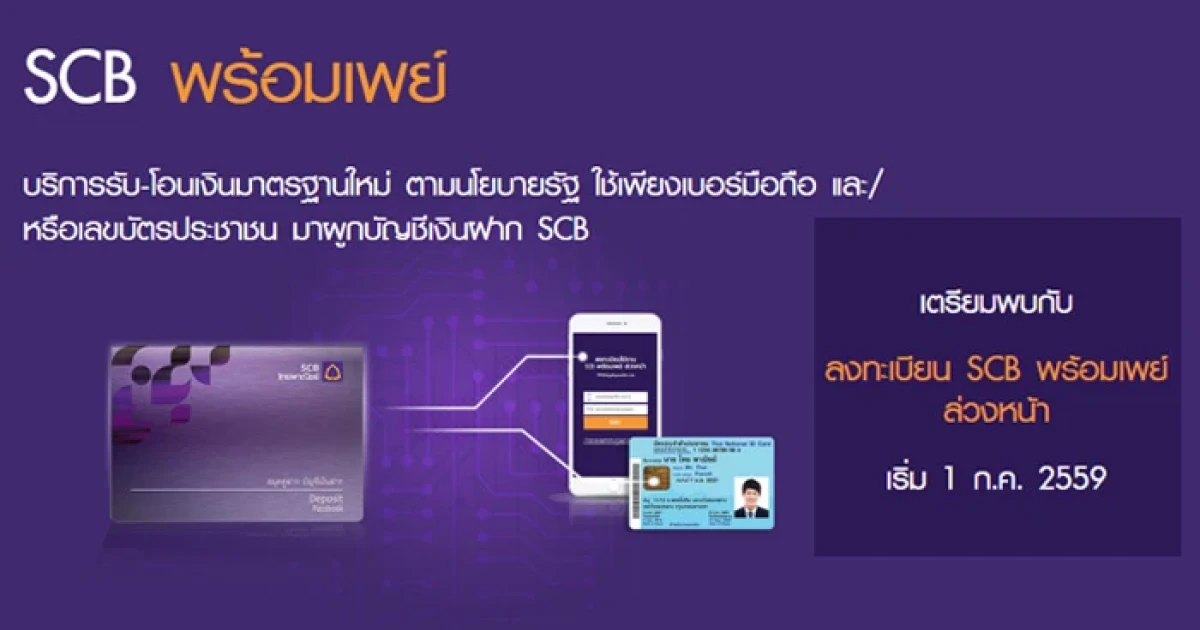 SCB พร้อมเพย์ จาก ธ.ไทยพาณิชย์ บริการรับ-โอนเงินมาตรฐานตามนโยบายรัฐ เริ่มลงทะเบียน 1 ก.ค. 59