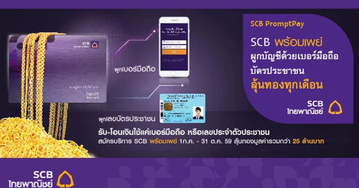 ลุ้นทองทุกเดือน เมื่อผูกบัญชีด้วยเบอร์มือถือ-บัตรประชาชน กับ SCB พร้อมเพย์ จาก ธ.ไทยพาณิชย์