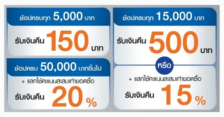 - สงวนสิทธิ์ จำกัดรับเครดิตเงินคืนสูงสุด 30,000 บาท/ บัญชีบัตร ตลอดรายการ