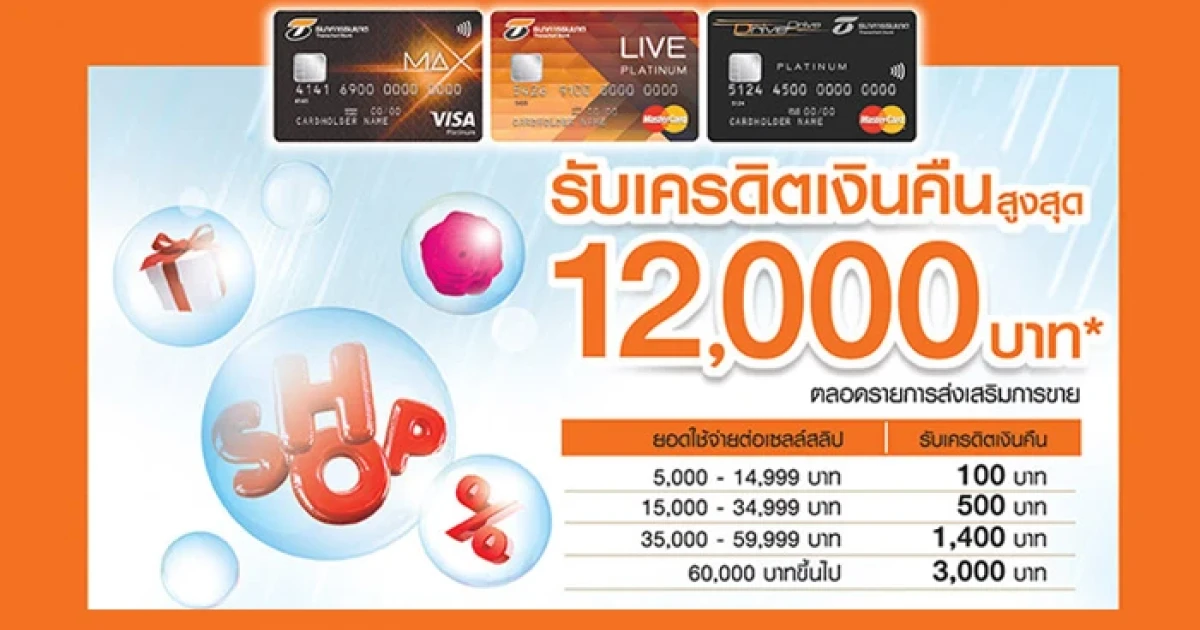 - รายการส่งเสริมการขายนี้สงวนสิทธิ์เฉพาะสมาชิกบัตรเครดิตธนชาต หรือบัตรเครดิตนครหลวงไทยเท่านั้น (บัตรเครดิตเพื่อองค์กร ไม่สามารถเข้าร่วมรายการนี้ได้)