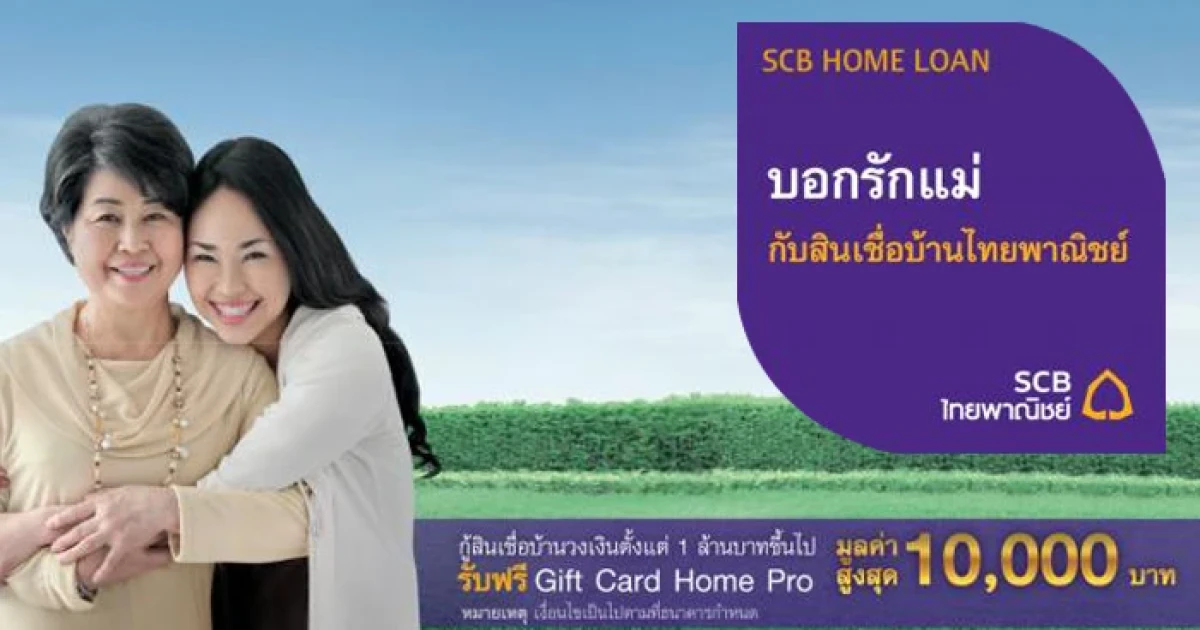 สินเชื่อบ้านไทยพาณิชย์ ชวนคุณมาบอกรัก ให้แม่รู้ โอกาสดี... ที่คุณจะได้บอกรักแม่ ด้วยของขวัญพิเศษ "Gift Card Home Pro" มูลค่าตามวงเงินกู้ สูงสุด 10,000 บาท เพื่อแลกซื้อสินค้า 3 สไตล์ ที่คุณและแม่สามารถเลือกได้เอง หรือเลือกรับบัตร Home Assistant Service Card (โปรแกรมช่างประจำบ้าน) มูลค่าเท่ากับบัตรกำนัลที่ได้รับ
