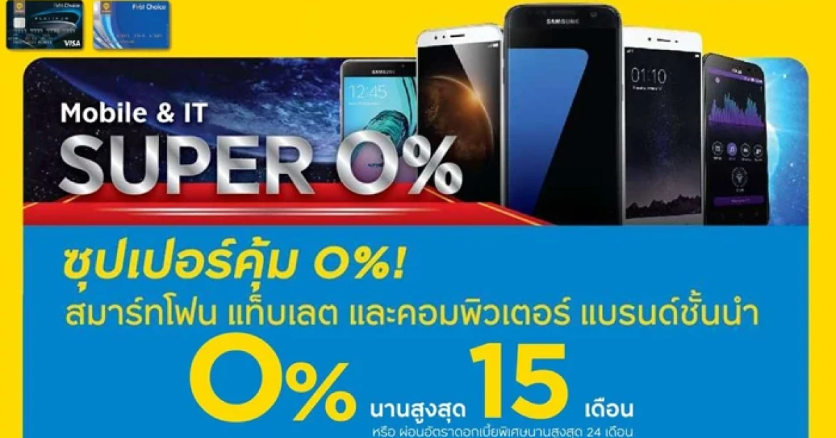 ผ่อนสมาร์ทโฟน แท็บเล็ต 0% นาน 15 เดือน พร้อมรับเงินคืนสูงสุด 5,000 บาท จากบัตรกรุงศรี เฟิร์สช้อยส์