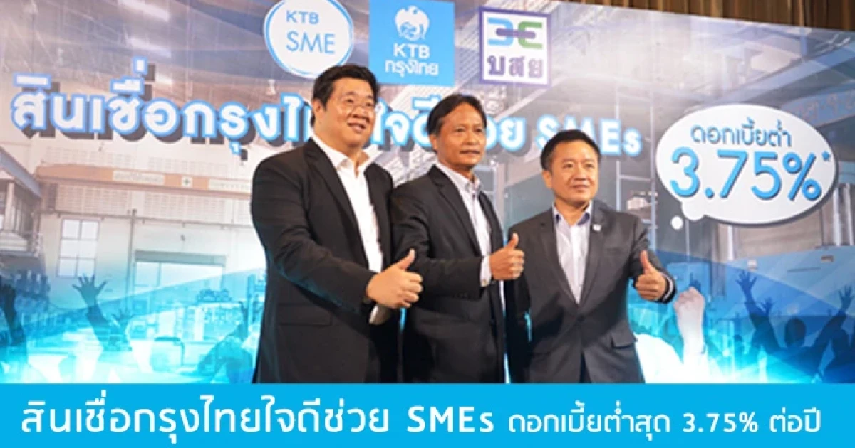 เปิดตัว "สินเชื่อกรุงไทยใจดีช่วย SMEs" ดอกเบี้ยต่ำสุด 3.75% ต่อปี พร้อมดึง บสย. ร่วมค้ำประกัน