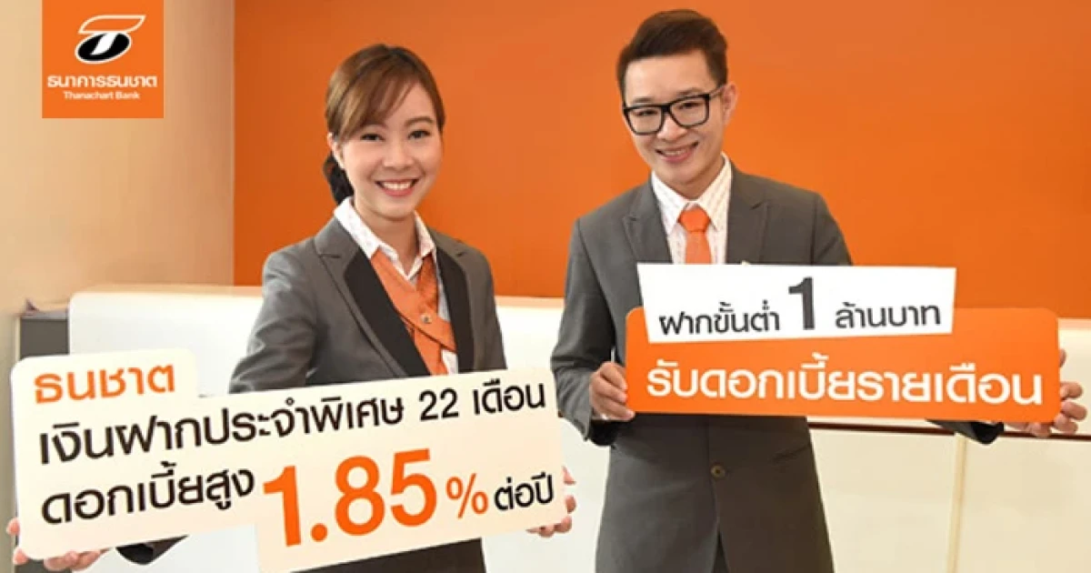 บัญชีเงินฝากประจำพิเศษ ระยะเวลาฝาก 22 เดือน จากธนาคารธนชาต ทางเลือกสุดพิเศษสำหรับการออม เฉพาะลูกค้าประเภทบุคคลธรรมดาเท่านั้น อัตราดอกเบี้ยสูง 1.85% ต่อปี พร้อมรับดอกเบี้ยรวดเร็วทันใจทุกเดือน