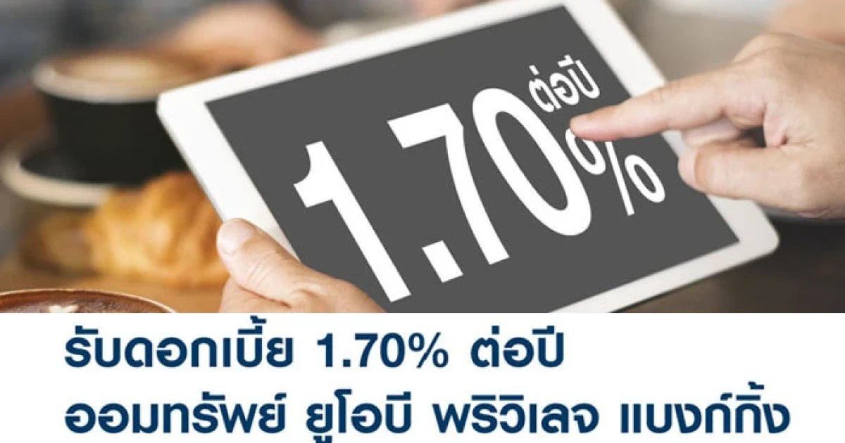 รับดอกเบี้ย 1.70% ต่อปี ออมทรัพย์ ยูโอบี พริวิเลจ แบงก์กิ้ง (เฉพาะยอดเงินส่วนเพิ่ม)
