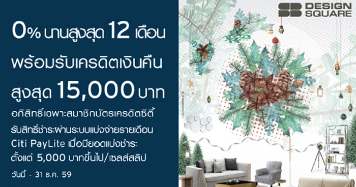 ผ่อน 0% นาน 12 เดือน พร้อมรับเงินคืนสูงสุด 15,000 บาท ที่ SB Design Square เฉพาะสมาชิกบัตรฯ ซิตี้