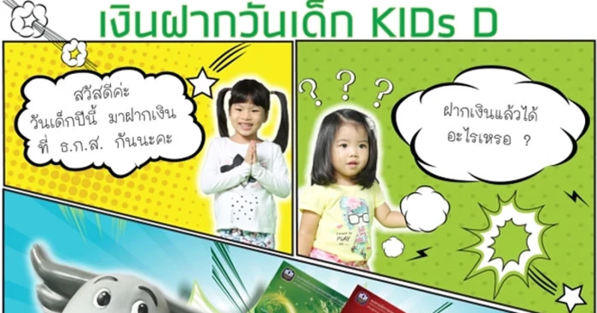 เงินฝากวันเด็ก KIDs D วันเด็กปีนี้ มาฝากเงินที่ ธ.ก.ส. เพียงเปิดบัญชี หรือฝากเงินเพิ่ม 500 บาท ก็ได้รับ "กระปุกน้องทุย" วันที่ 14 มกราคม 2560 ที่ ธ.ก.ส. เฉพาะสาขาที่ร่วมรายการ