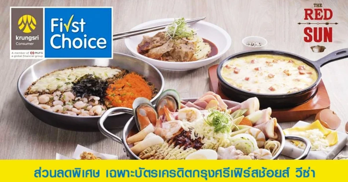 รับส่วนลดพิเศษ... เมื่อรับประทานอาหารที่ร้าน THE RED SUN และชำระผ่านบัตรเครดิตกรุงศรีเฟิร์สช้อยส์ วีซ่า