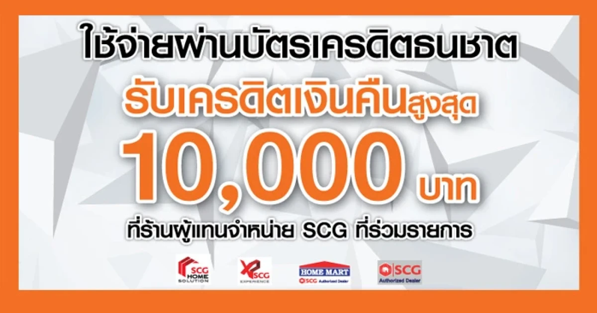 รับเงินคืนสูงสุด 10,000 บาท เมื่อซื้อสินค้าที่ร้านผู้แทนจำหน่าย SCG ที่ร่วมรายการ ผ่านบัตรเครดิตธนชาต