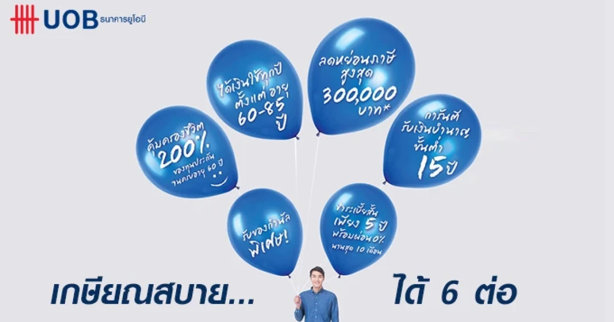 ลดหย่อนภาษีกับประกันชีวิตแบบบำนาญ จ่ายเบี้ยสั้น 5 ปี รับของกำนัลพิเศษ วันนี้ - 31 มี.ค. 60 จาก ธ.ยูโอบี
