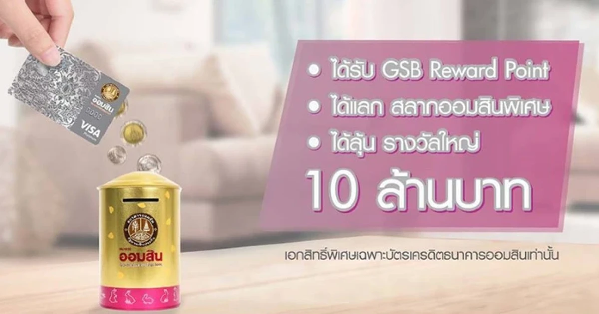 บัตรเครดิตธนาคารออมสิน ยิ่งใช้ ยิ่งได้ออม รับ GSB Reward Point และยังได้ลุ้นรางวัลใหญ่ 10 ล้านบาท