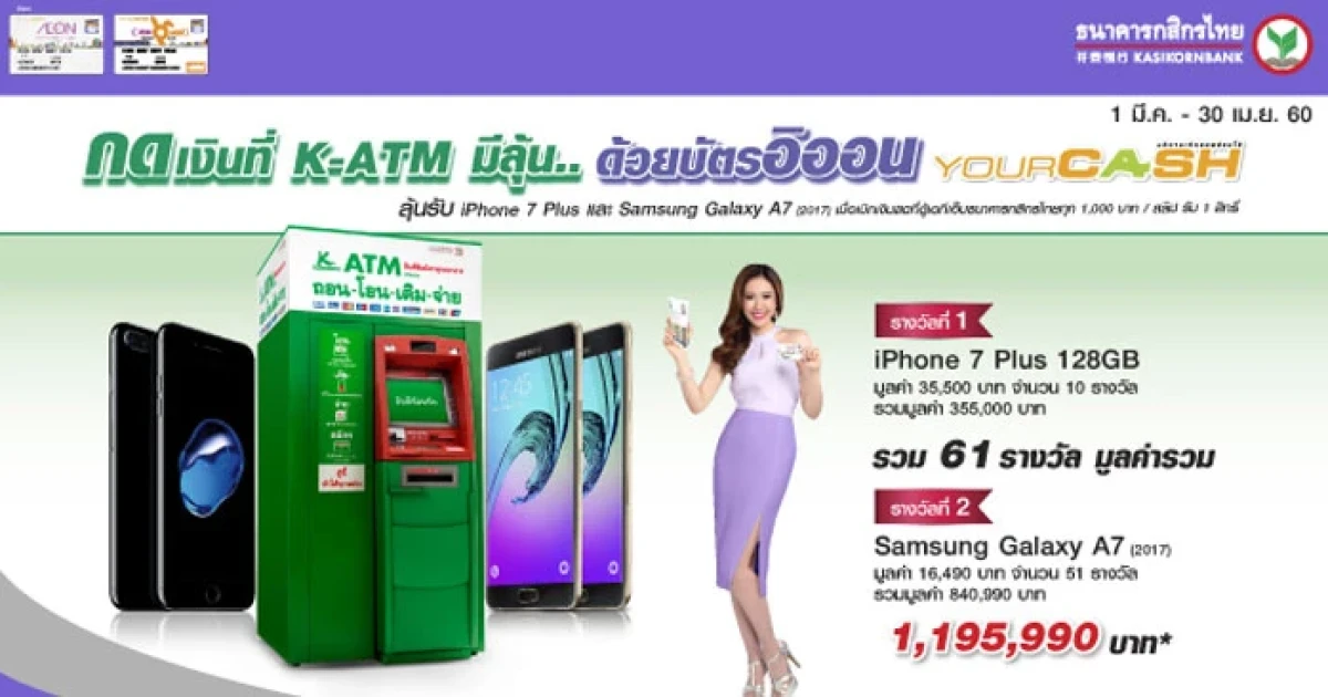 ลุ้นรับ iPhone 7 Plus และ Samsung Galaxy A7 เมื่อกดเงินที่ K-ATM ด้วยบัตรอิออน Your Cash