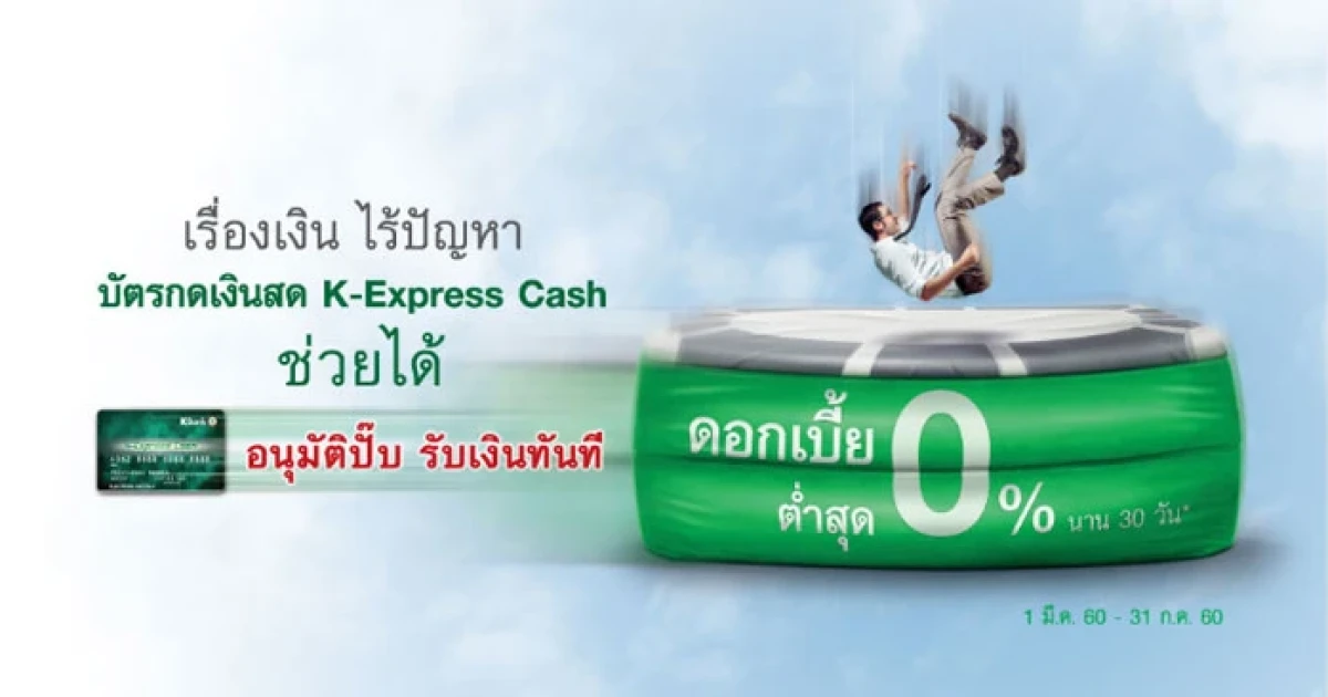 เรื่องเงิน ไร้ปัญหา บัตรกดเงินสด K-Express Cash ช่วยได้ รับดอกเบี้ยต่ำสุด 0% นาน 30 วัน