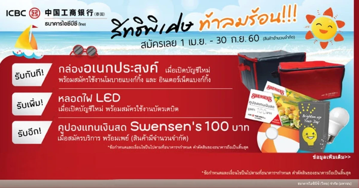 สิทธิพิเศษ ท้าลมร้อน สำหรับลูกค้าเปิดบัญชีใหม่กับธนาคารไอซีบีซี(ไทย)