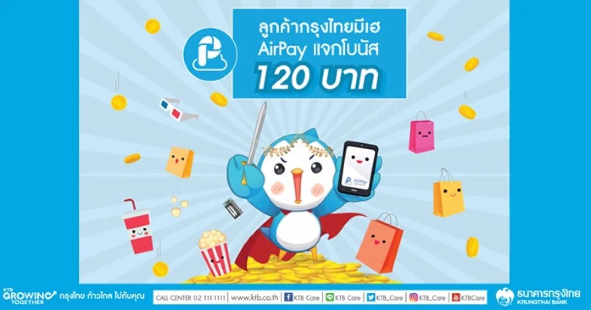 ลูกค้ากรุงไทยมีเฮ ทำรายการผ่านแอปพลิเคชัน AirPay รับโบนัสเข้าบัญชีทันที 120 บาท