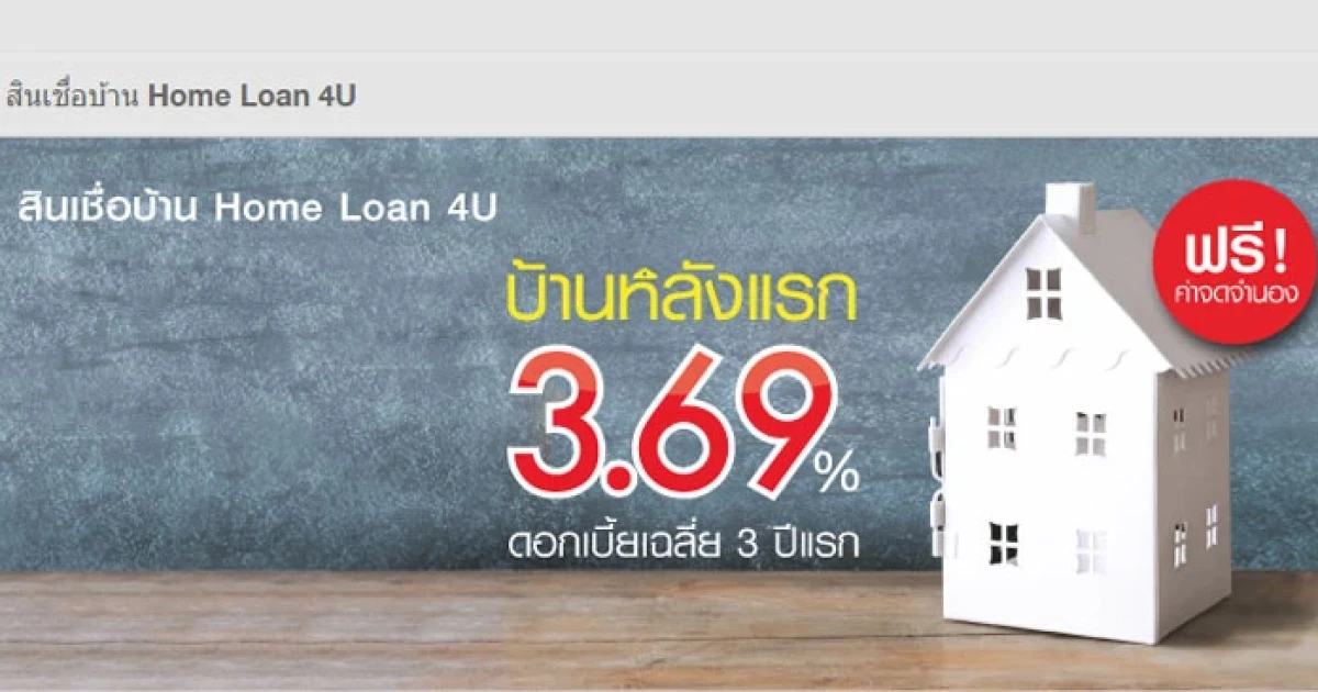สินเชื่อบ้าน Home Loan 4U กู้ซื้อบ้านหลังแรก! ดอกเบี้ยเฉลี่ย 3 ปีแรก 3.69%