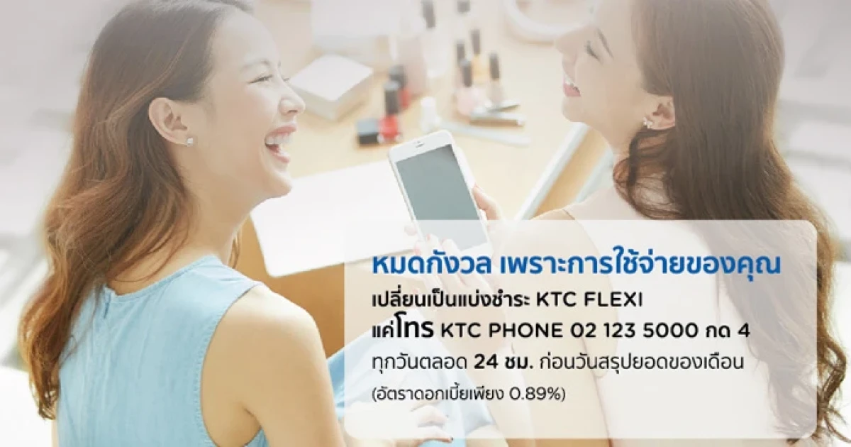 หมดกังวล เพราะการใช้จ่ายของคุณ สามารถเปลี่ยนเป็นแบ่งชำระ KTC FLEXI ได้ทุกวัน ตลอด 24 ชม. ก่อนวันสรุปยอดของเดือน (ด้วยอัตราดอกเบี้ย 0.89% ต่อเดือน) และใช้คะแนนสะสม KTC Forever Rewards แลกรับเครดิตเงินคืน 13% เมื่อแบ่งชำระนาน 10 เดือน