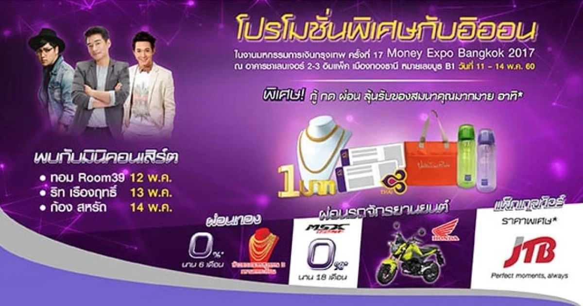 โปรโมชั่นพิเศษกับอิออนในงานมหกรรมการเงินกรุงเทพ ครั้งที่ 17 Money Expo Bangkok 2017 ณ อาคารชาเลนเจอร์ 2 - 3 อิมแพ็ค เมืองทองธานี หมายเลขบูธ B1 วันที่ 11 - 14 พ.ค. 60 นี้