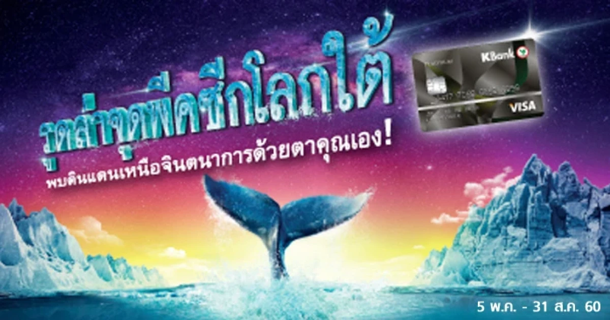 รูดล่าจุดพีคซีกโลกใต้ พบดินแดนเหนือจินตนาการด้วยตาคุณเอง.. ปรากฎการณ์สุดขอบโลกพร้อมสัมผัสได้จริงแล้ววันนี้! เพียงใช้จ่ายผ่านบัตรเครดิตกสิกรไทย และ บัตรเดบิตกสิกรไทย ทุกๆ 1,000 บาท/ เซลล์สลิป สามารถรับสิทธิ์ลุ้นรางวัลใหญ่ มูลค่ารวมกว่า 4 ล้านบาท*