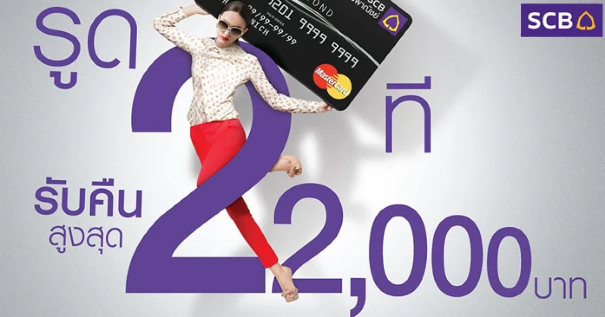 รูด 2 ที รับคืนสูงสุด 22,000 บาท เพียงใช้จ่ายผ่านบัตรเครดิต SCB ครบ 2 ครั้ง/ สัปดาห์ ตั้งแต่ 2,000 บาท/ เซลล์สลิป ณ ร้านค้าที่ร่วมรายการ