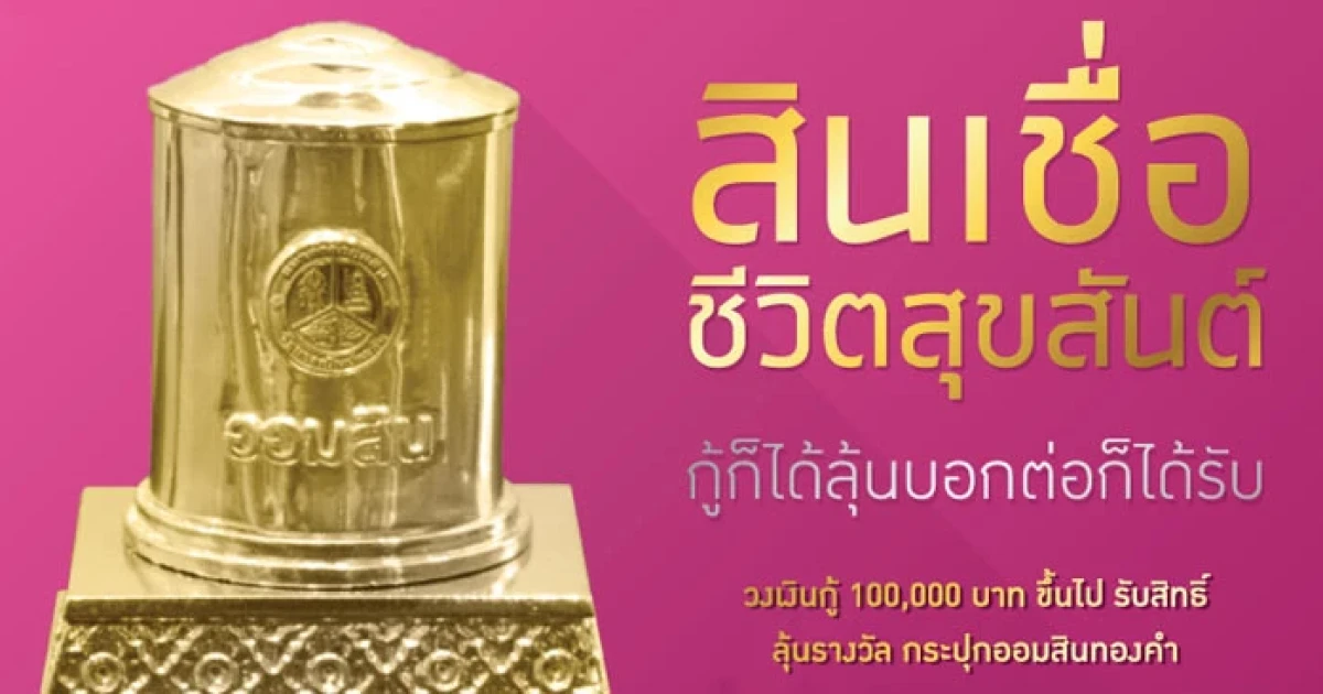 - วงเงินกู้ 100,000 บาทขึ้นไป รับสิทธิ์ลุ้นรางวัล กระปุกออมสินทองคำมูลค่ากระปุกละ 100,000 บาท!! จำนวน 5 รางวัล