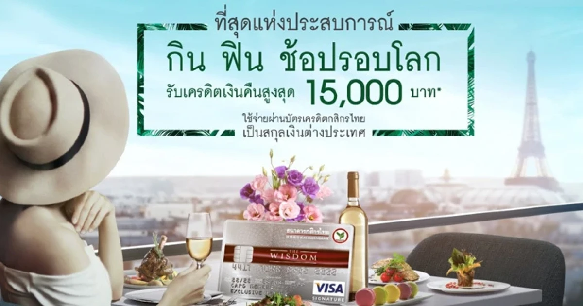 ที่สุดแห่งประสบการณ์ กิน ฟิน ช้อปรอบโลก รับเงินคืนสูงสุด 15,000 บาท เมื่อใช้จ่ายผ่านบัตรฯ กสิรกรไทย