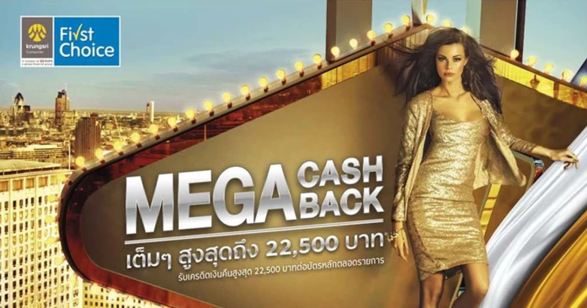 MEGA Cash Back! คุ้มค่าทุกวัน ได้เครดิตเงินคืนเต็มๆ สูงสุดถึง 22,500 บาท เมื่อใช้จ่ายผ่านบัตรเครดิตกรุงศรีเฟิร์สช้อยส์ วีซ่า