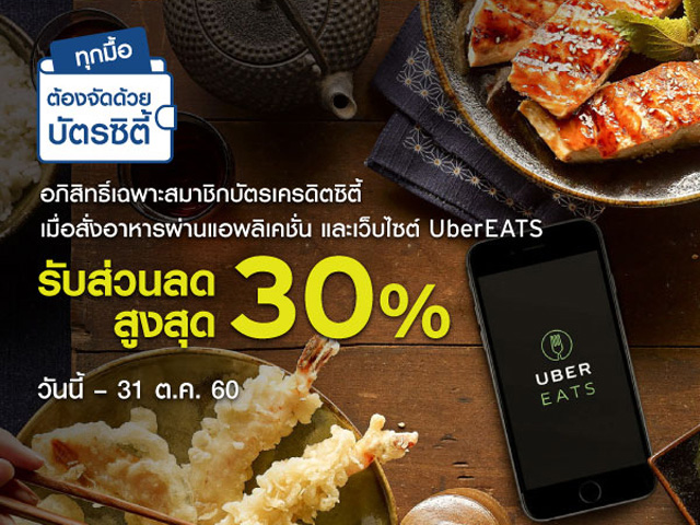 รับส่วนลดสูงสุด 30% เมื่อสั่งอาหารผ่านแอปพลิเคชั่น และเว็บไซต์ UberEATS และชำระผ่านบัตรเครดิตซิตี้