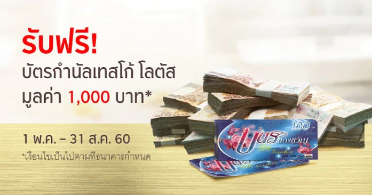 รับฟรี!! บัตรกำนัลเทสโก้ โลตัส มูลค่า 1,000 บาท