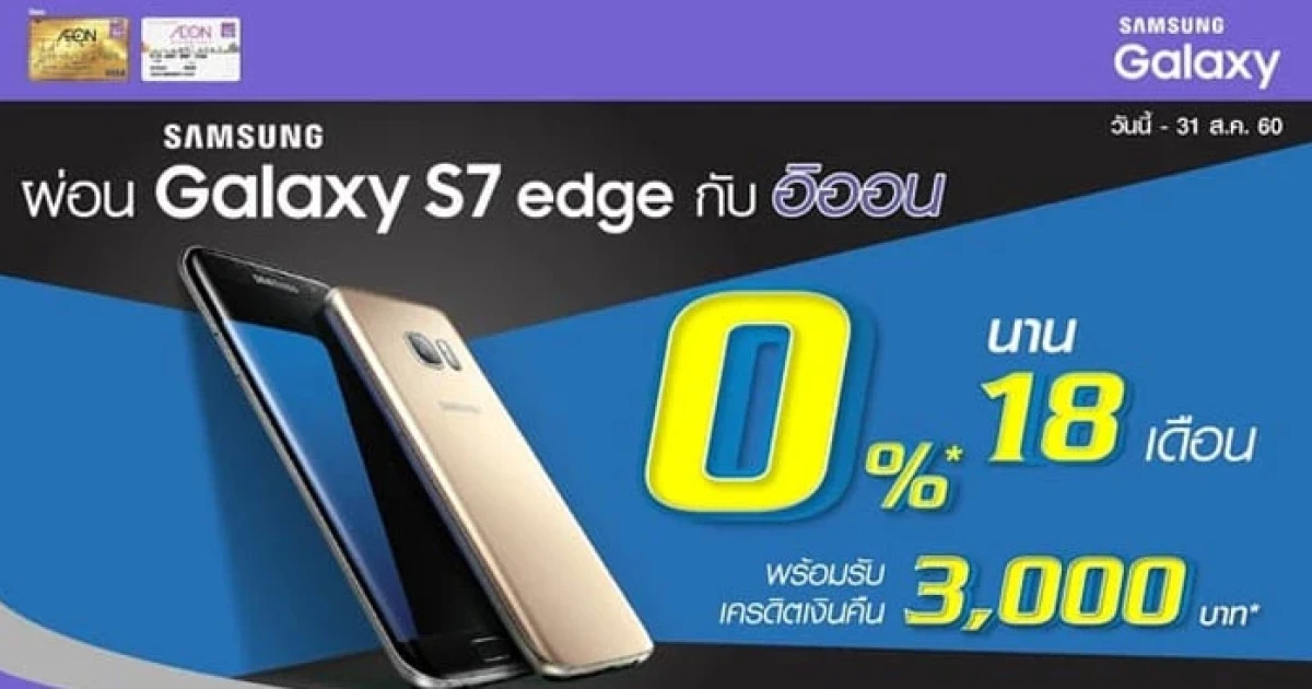 ผ่อน Galaxy S7 edge กับอิออน 0% นาน 18 เดือน พร้อมรับเครดิตเงินคืน 3,000 บาท