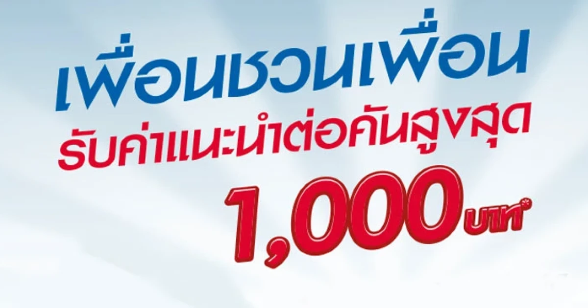 เพื่อนชวนเพื่อน รับค่าแนะนำต่อคันสูงสุด 1,000 บาท เมื่อแนะนำเพื่อนขอสินเชื่อจำนำทะเบียน จาก เงินติดล้อ