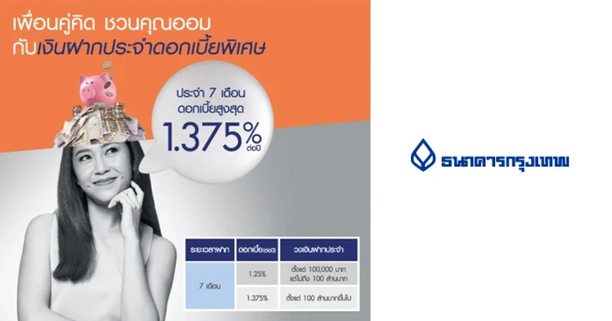 บัญชีเงินฝากประจำ 7 เดือน จาก ธนาคารกรุงเทพ เพื่อนคู่คิด ชวนคุณออม พร้อมรับดอกเบี้ยพิเศษ