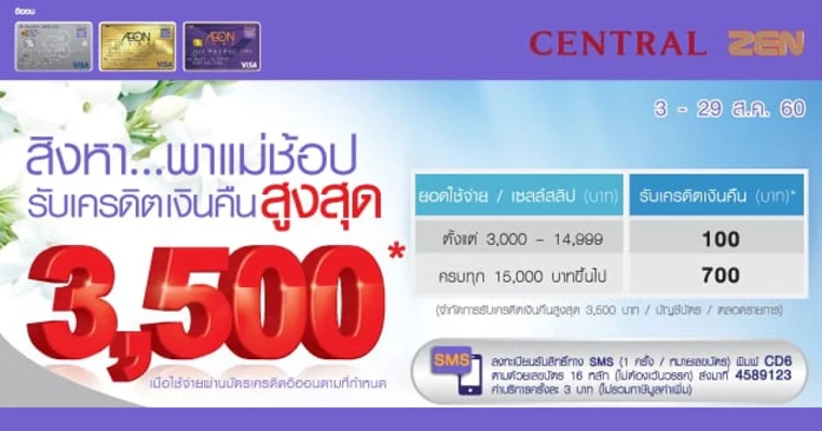 สิงหา...พาแม่ช้อป รับเครดิตเงินคืนสูงสุด 3,500 บาท ณ ห้างสรรพสินค้าเซ็นทรัลทุกสาขา และห้างสรรพสินค้าเซน จากบัตรเครดิตอิออน
