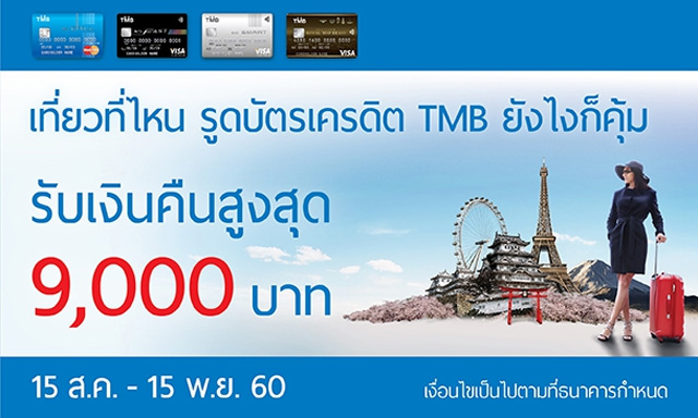 เที่ยวที่ไหน รูดบัตรเครดิต TMB ยังไงก็คุ้ม! รับเงินคืนสูงสุด 9,000 บาท เมื่อมียอดใช้จ่ายสะสมในต่างประเทศ และชำระเป็นสกุลเงินต่างประเทศ (ไม่รวมยอดช้อปผ่านทางออนไลน์)
