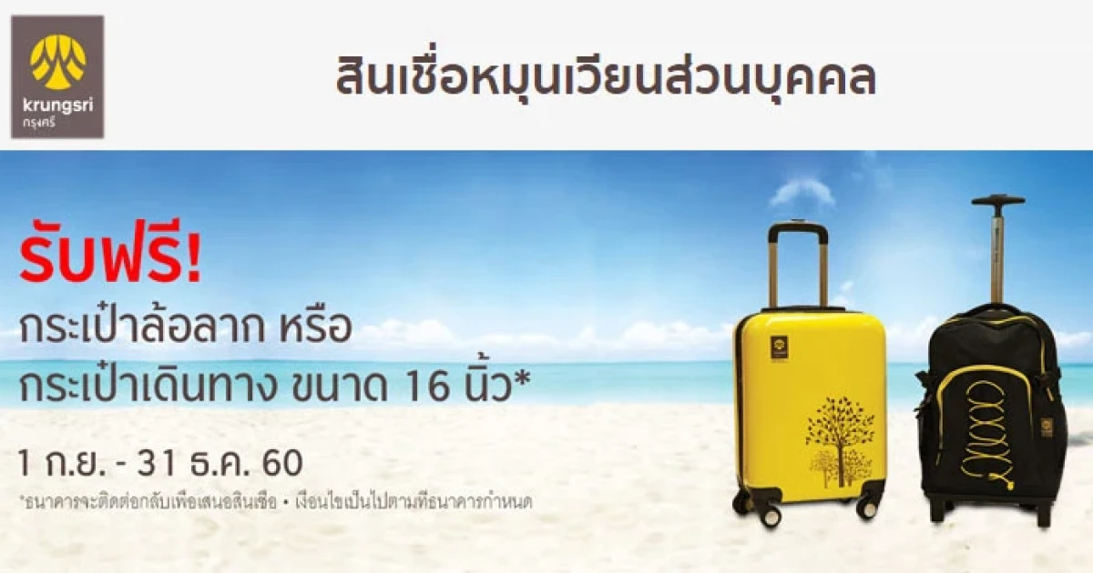 รับฟรี! กระเป๋าล้อลาก หรือกระเป๋าเดินทาง เมื่อขอสินเชื่อหมุนเวียนส่วนบุคคลผ่านออนไลน์ ถึง 31 ธ.ค. 60